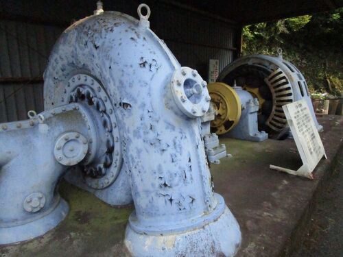 弥栄ダムから、小瀬川下流を望む。小瀬川は、一級河川で、山口県と広島県の、県境を流れる。 水車と発電機。中国電力小瀬川第一発電所に設置されていたもの。最大出力900キロワット。弥栄ダム建設に伴い廃止されました。 Little Gree Monster「朝がまた来…