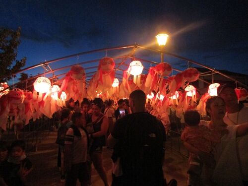 柳井川にかかる、本橋も、「金魚ちょうちん」で、飾られています。 金魚ねぶたが、祭りの会場を、練り歩きます。 松浦亜弥「みんなひとり」