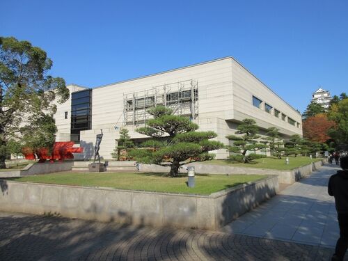 ふくやま美術館(東側)。1988年11月開館。福山城公園内にあります。福山広域圏、瀬戸内圏の作家、イタリアを中心にした現代ヨーロッパ美術の作品、若手で将来が期待される作家の作品などが収蔵されています。 ふくやま美術館前(福山城公園)から、西…