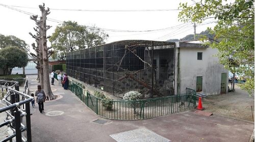 周南市徳山動物園内の坂道を上がって丘の上に行きます。この丘の上にはマントヒヒやチンパンジーなどが待っています。そして、その奥には“野生の王国” アフリカのサバンナの草食動物がいます。 丘の上には小さな公園がありました。前方の左の動物舎にマント…