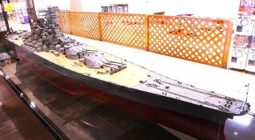 【1/100スケールの戦艦「大和」の模型(軍艦ミュージアム)】 1/100スケールの戦艦「大和」の模型が軍艦ミュージアムに展示してありました(軍艦模型の展示品は全てガラスケースに入っていますので写真にはガラスの反射などがあります)。戦艦「大和…