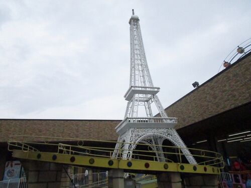 マリホ水族館。 パリのエッフェル塔をイメージしたタワーと、タワーの周囲を巡る遊具。 ウキ「つぐない」