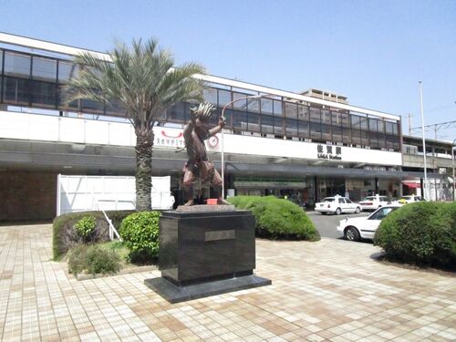 佐賀県庁11階展望ホールから、佐賀市街を望む。 11階の展望レストランで昼食の予定だったが、待ち時間1時間とのことなので、とり止めた。 鉄道マニアがいるので、佐賀駅へ。 銅像は、面浮立(めんぶりゅう)で、佐賀県の代表的な民俗芸能。駅ビルで昼食…