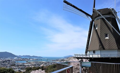 【TOSOH PARK 永源山(永源山公園)の「ゆめ風車」】 標高約90mの丘、永源山山頂の展望台から「ゆめ風車」と瀬戸内海を望む。瀬戸内工業地域の周南コンビナートが広がっています。中央に周南大橋があり、周南大橋を渡った左側に、東ソー・エスジーエム(…