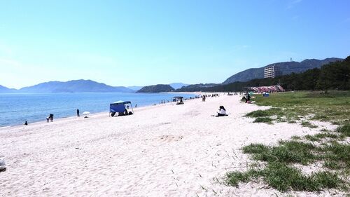 【虹ケ浜海岸】 白砂、青松の美しい海岸線が約2.4kmに渡って続いています。虹ケ浜海岸は「日本の渚百選」「快水浴場百選」にも選定されています。【他の写真】 【虹ケ浜海水浴場から瀬戸内海を望む】 虹ケ浜海水浴場は粒の細かい白砂のビーチで、人気の…